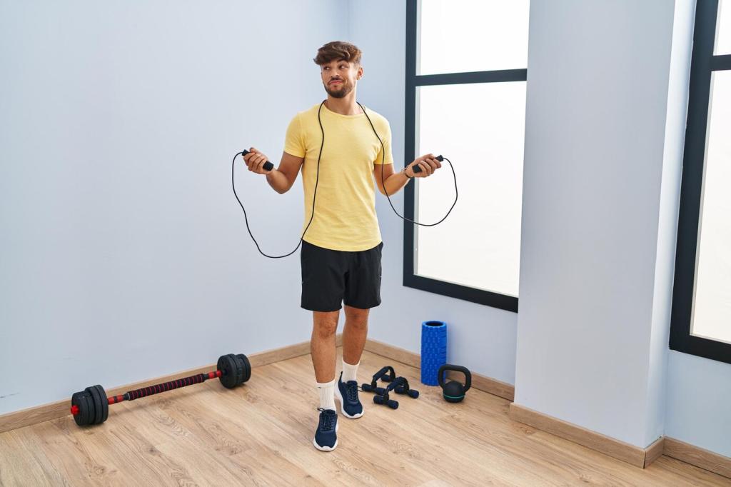 Begin with a jump rope, resistance bands with a door anchor, and a non-slip mat. With these three, you can train full-body strength, cardio, and mobility anywhere.